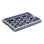 Serve your guests in style with this beautiful bone-inlaid tray. Handmade in India, it makes a stunning addition to any tabletop. Each of our bone-inlaid pieces was carefully crafted by hand, creating variations that make each piece unique.