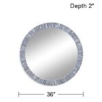 A perfect blend of exotic elegance and light, airy style delivers a beautiful piece that accents a modern space. The Radial Bone round wall mirror by Bassett Mirror Company adds a blush of color with white and blue finish lines on a bone construction frame. This mirror adds an enticing look for an entryway to a beach cottage or an urban master suite. Mount using D-rings hangers on the back.