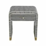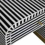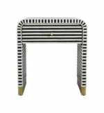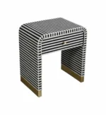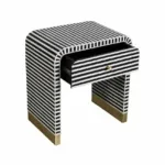 Each bedside table has been handcrafted from ethically sourced buffalo bones in India, ensuring every piece is unique in its disposition. The time-honored art of Bone Inlay was originally hand-crafted for the royal palaces of Uttar Pradesh, India. Handed down from generation to generation, intricate fragments of buffalo bones are hand-carved and then affixed to the base in a mosaic-like design. Resin is then used to fill the space around the bone.