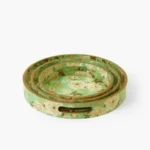 Introduce a vibrant nature-inspired aesthetic to your dining experience with these beautifully crafted serving trays. Each tray features golden floral patterns against a pastel blue background, adding a touch of elegance to any wooden, marble, or glass tabletop. These round trays are handcrafted using MDF boards, making them durable and long-lasting. The 3 trays in the set come with incut handles that make it easy to carry multiple drinks and snacks, making them perfect for entertaining guests or enjoying a cozy evening.