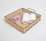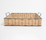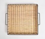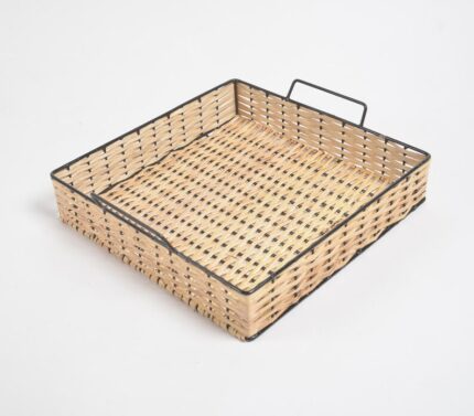 This artisanal tray is an iron and cane offering and has been woven by rural artisans employing the art of cane basketry. Being a handmade process used by local artisans of the weaving community, cane basketry is quite interesting to witness. The whole offering is exclusively just woven strips of cane which get beautifully decorated by applying various themes and ideas. Cane is shredded by local craftsmen, with a blade, into strips of multiple sizes. Numerous strips of cane then get interlaced with the vertical cane strips. All the strips are woven with such consistency that the final product already has a beautiful design. These products are what then become your daily bags, baskets, and other accessories