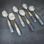 This extravagant 6 piece of grainy wood serving spoon set have a gentle sheen to them, and are easy to grip. They’re perfect for stirring sauces and adding a touch of class to your meals.