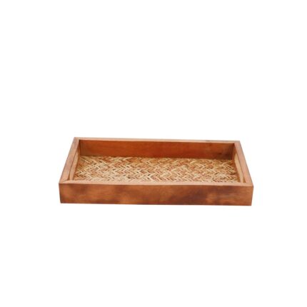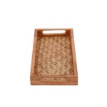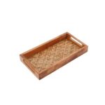 The bamboo is a light weight, flexible, tough, high tensile and economical natural material. Using this versatile and simple yet elegant base, VarEesha presents Bambusa kitchen and dining collection of hand crafted pieces with ethnic looks that can match today’s modern style dining too. Made of Acacia wood, this collection showcases small dining accessories and serve-ware collectibles made with a mix of various types of wood with primary base as Bamboo mat rolls, that add a rustic charm to your dining experience. Each piece is hand-made uniquely and thus may differ slightly from the image in shade or pattern adding to its authentic natural look. Hand Crafted Acacia Wood Bamboo Base Small Tray is a part of this beautiful subtle range. Measuring 10.5×5.5×1.5 inches in lxbxh , it is convenient to handle and maintain. Eye catching & neat, this also makes an excellent choice for gifts.