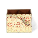 Featuring two same-sized compartments and an attached tissue stand, it is perfect for storing your cutlery, cosmetics, art supplies, and more. This caddy is an absolute must-have for your kitchen and dining table, keeping your cutlery organized and within easy reach. Plus, this enamel wooden caddy can be used to store a wide variety of items, making it a great addition to any workspace or bar counter. You can use it to store pens, pencils, paperclips, and other office supplies, or even to keep your bar tools organized.