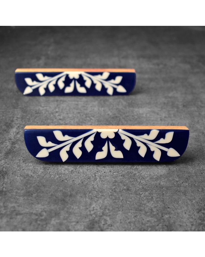 The Gulbahar is a floral epoxy resin and wood handle. It is a beautiful union of polished wood and white epoxy resin that will uplift the look of your furniture cabinets, almirahs, cupboards, dressers and doors. This handle is hand made by skilled craftsmen.