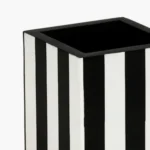 Crafted with utmost care and attention to detail, this caddy showcases a stunning black and white striped pattern, creating a bold visual impact. The combination of high-quality MDF wood and enamel ensures durability and longevity, making it a practical and stylish addition to your home or office.