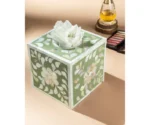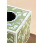 HIGH-QUALITY MOTHER OF PEARL INLAY TISSUE BOX HOLDERS is a lifestyle brand and a fair trade business for unique products handmade by artisans and craftsmen in different regions of India. We blend traditional handcrafting techniques with contemporary design in home decor & fashion to promote social uplift within artisan communities. All our products are crafted using traditional methods passed down through generations with ethically sourced, finest materials because we believe that the beautiful things you choose for your home today should bring you pleasure for many years to come. Shop our exclusively crafted and curated collection to decorate, accessorize and personalize your home or office today. THE TIMELESS ART OF SHELL INLAY No animal or living organism was harmed in the making of this beautiful tissue box holder. An inlay is a technique of inserting pieces of contrasting material into depressions made on a base object. The production of pearl inlay furniture and decorative items is a three-step process and requires up to a month to create each piece. First, the fragments of mother pearl shells are shaped delicately. Then these intricate shapes are affixed onto an MDF frame in a detailed & stylized pattern. After this, the colored resin is filled around the shaped pieces of MOP to craft the background. The mother of pearl shells is offset by the striking color of the resin to create an exotic-looking rustic piece of home decor.