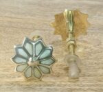 Handcrafted brass and mother of pearl gold and ivory cabinet knobs in a variety of geometric designs.