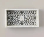 Perfect for the bathroom, entryway, or bedside, this gorgeous tray is crafted with a mother-of-pearl floral inlay pattern