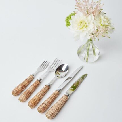 This elegant 5-piece rattan cutlery set is hand-crafted with beautifully woven natural rattan handles.