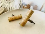 Rattan T bar knobs add charm and texture to furniture, cabinets, and doors, enhancing the aesthetic appeal of your home space. The natural look of rattan with the gold end caps can add a touch of elegance and warmth to any room.