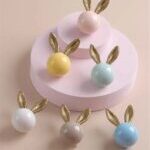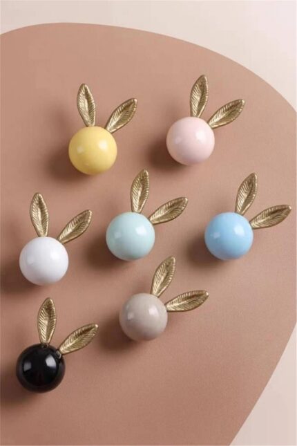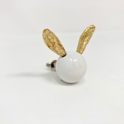 Handmade long gold eared resin rabbit knob.