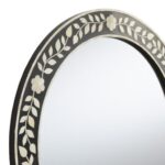 In a sophisticated round shape, our exclusive wall mirror is decorated with a white floral inlay on a black backdrop. Handcrafted by skilled artisans of sustainably sourced bone, this circle mirror lends chic botanical-inspired beauty to any room in your home.