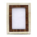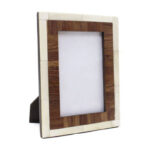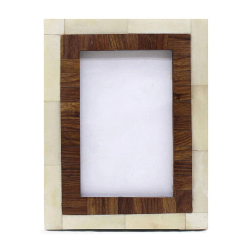 Rustic wooden textures complement the natural ivory colored bone to create a very elegant and contemporary look in this photo frame