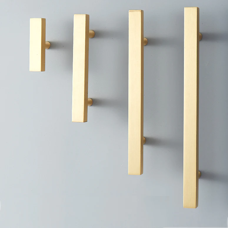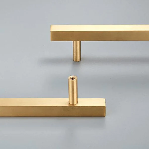 solid brass square bar handle pulls with a brushed gold finish will add sophistication and style to any drawers or cabinets.