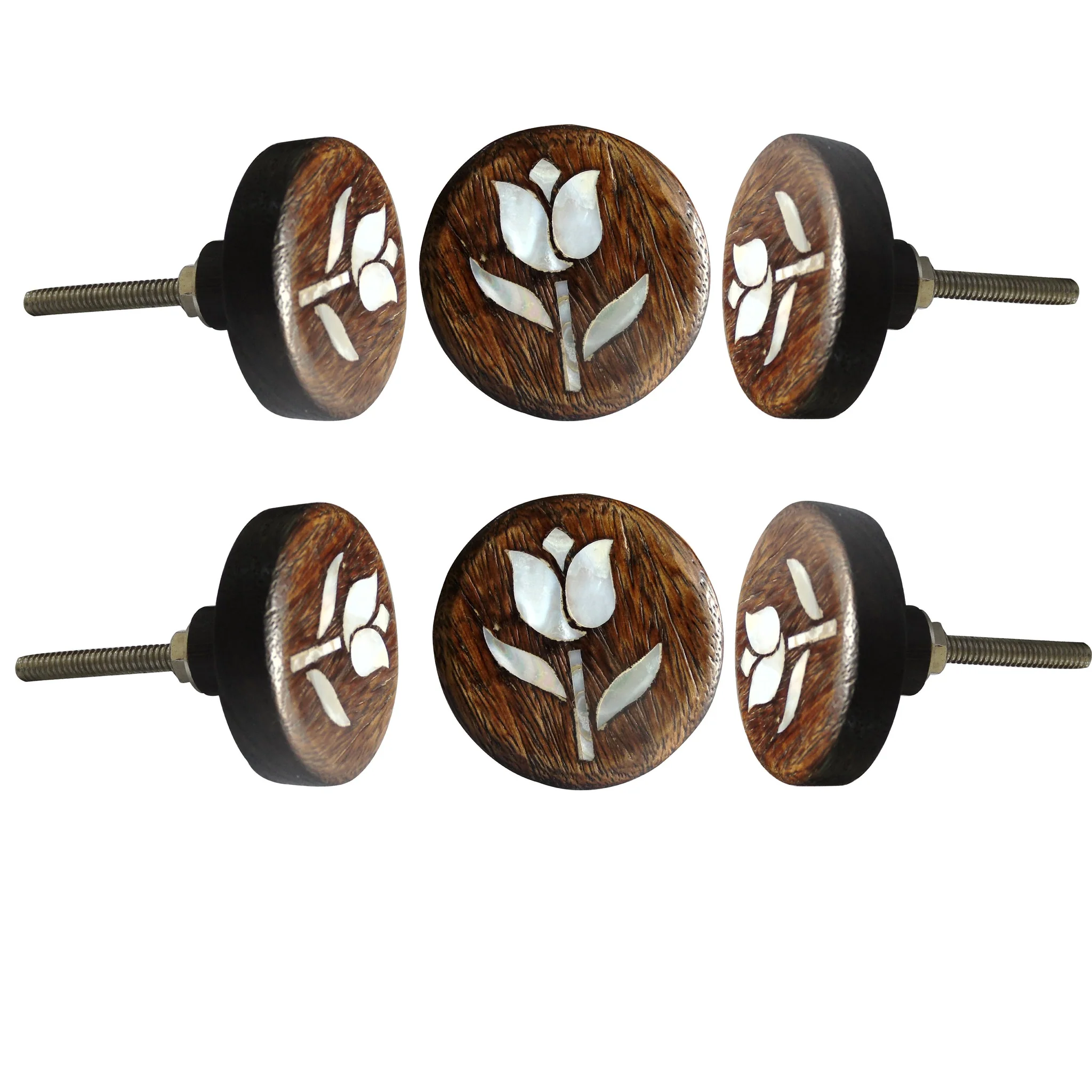 These are beautiful handcrafted 1 Pieces Round MOP Tulip Flower Wooden Knob. These are of Great Quality Handmade Cabinet Pulls makes your Kitchen, Home Office very unique. We make our Knobs using high class raw material than other Sellers. Our quality controllers are very strict in quality control of each product. Look wise These knobs are very pretty. These Knobs always supplied with Standard Size Hardware and plastic washers.