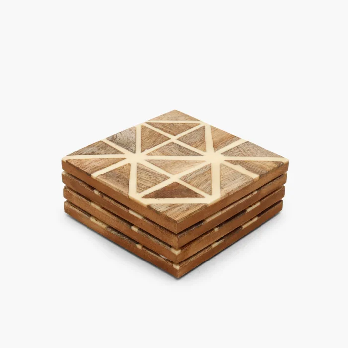 Featuring a creative take on an argyle pattern, this wooden coaster set comes with diamond patterns and a plus sign in between them, creating four triangles in each diamond. Designed using mixed media and wood, the sturdy pieces are perfect for protecting your furniture finish from stains and spills.