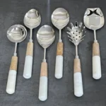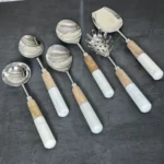 This ostentatious serving spoon set is crafted from high quality, white wood. The wood is used to make the spoon smooth and lightweight. The set is a great addition to any table and enduring for so long.