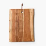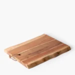 Handcrafted in sturdy hardwood and food-safe materials, this cheese platter doubles up as a cutting board and serving accessory. Featuring a clean straight cut around three sides and a textured finish on one side with wooden bark accentuating the area, the platter comes with a minimal rustic touch. It can be used in a variety of ways – use this board for serving food, decorating accents, or as a trivet.